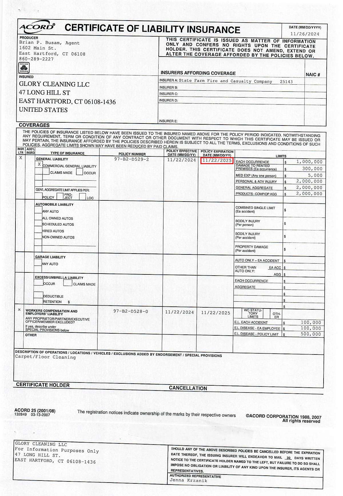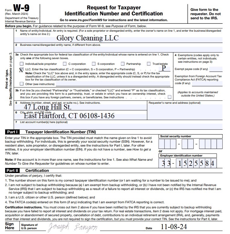 We are now officially “Glory Cleaning LLC!” Through the rest of 2024 and following