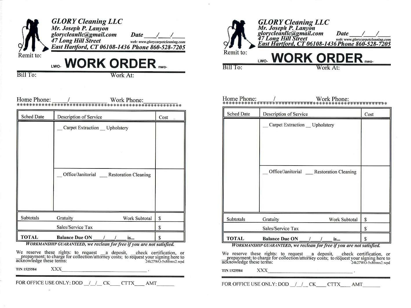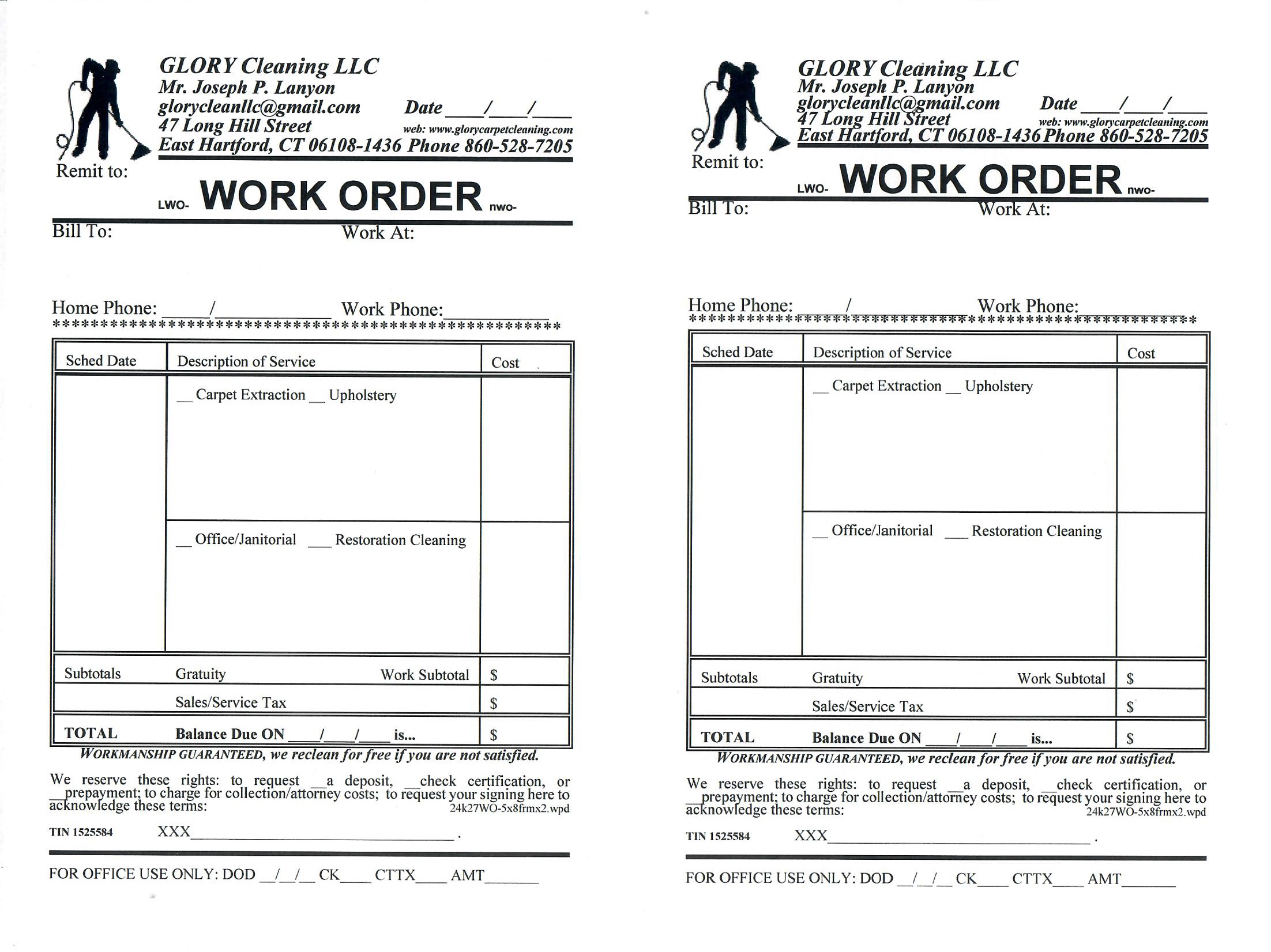 - Work Order for Carpet Cleaning x2 to Print as a Blank Form (PDF)