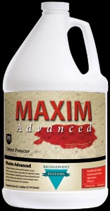 Maxim™ Advanced is a totally new formula that represents the cutting edge of carpet protectors today. It (1)* uses state-of-the-art, environmentally safe fluorochemical technology to protect against damaging dry soils as well as both water-based and oil-based spills. But the real key is how Maxim™ Advanced (2)*coats fibers with a stain barrier to protect them from difficult dye stains “from the inside out”.