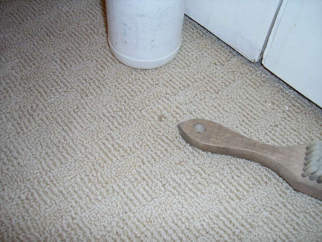 Tamping brush (partially shown in this picture) has harder or softer bristles to break surface tension between soiling and tufts of carpet or fabric. - Terry-cloth Towel OR Paper towels (softer and more absorbent the better, and white if possible to detect or make obvious the removal of soiling)