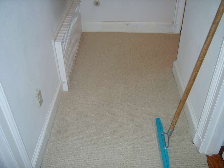 This is carpet just cleaned in an apartment with olefin type, berber style, beige colored, sculptured carpet showing that re-stretching IS required here, most likely because the original install did not include “Power-stretching” (a tool really essential for all installations) was not used. A “Knee-kicker tool” cannot do what a “power-stretcher” can do! Be sure you ALWAYS specify and demand the use of this for every installation!